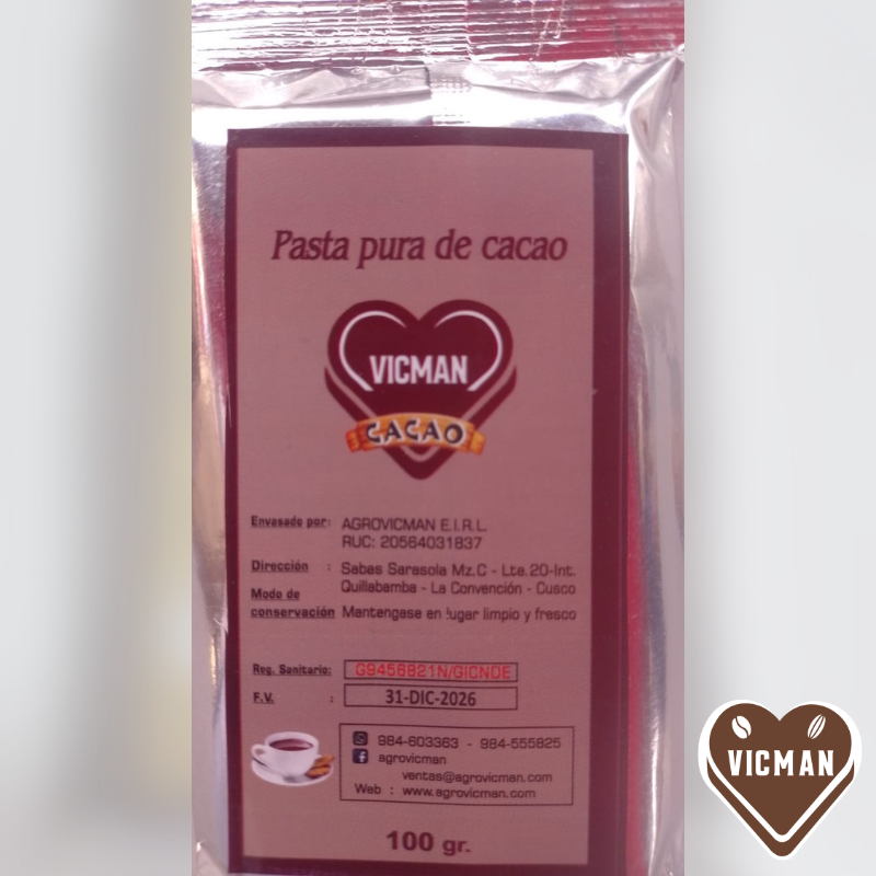 Descubre la esencia del verdadero cacao con nuestra pasta pura de 100g, elaborada 100% con granos seleccionados de alta calidad. En Agrovicman cuidamos cada etapa del proceso, desde la cosecha hasta la molienda, para ofrecerte un producto auténtico, sin aditivos ni azúcares añadidos.